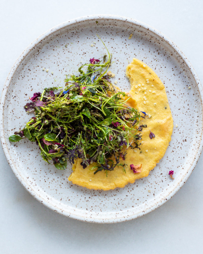 And while it’s not mandatory, I’ve found having a fresh, herbaceous salad element really helps brighten the earthiness and richness of socca. Here are the ingredients for my favorite way to top a socca meal: