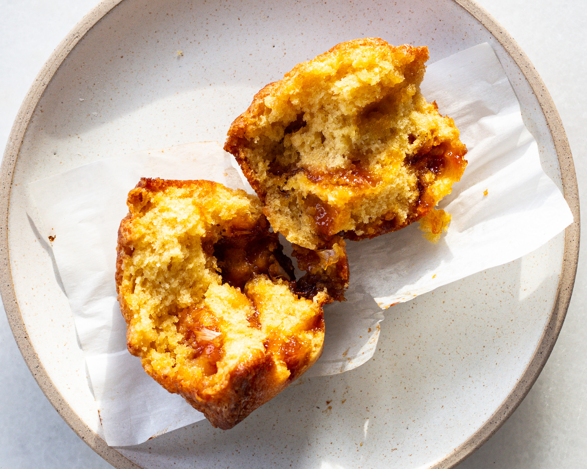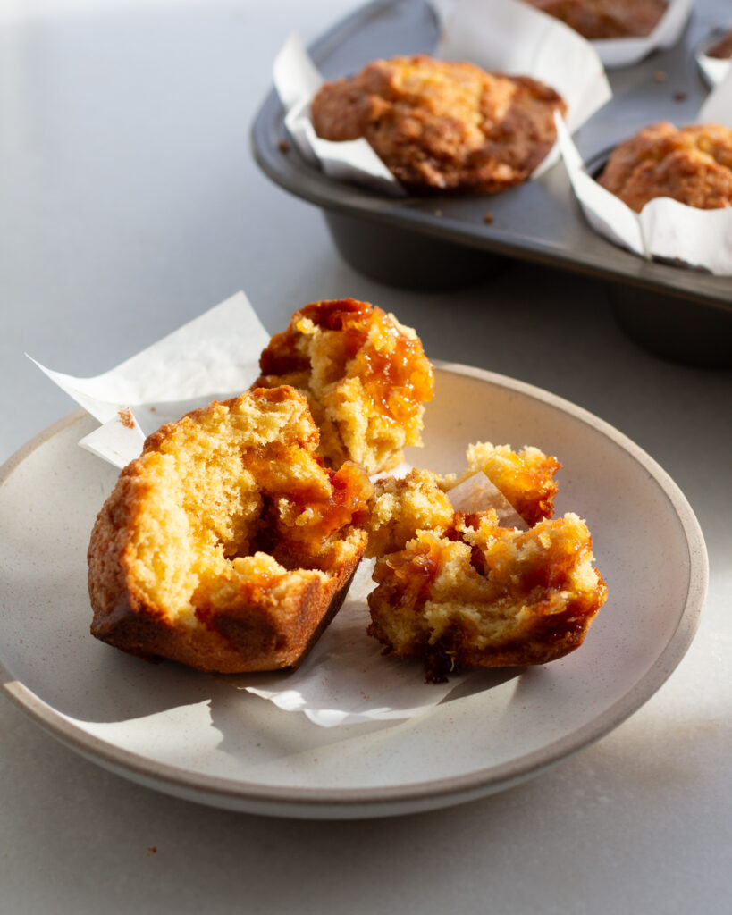 I made these with oranges, and gluten-free and dairy-free, with mixed results! the orange caramel was lovely, I’d definitely recommend it! the GF DF substitutions were necessary (didn’t want to poison my allergic bf!) but risky for sure- the muffins came out with a nice, light texture (a little crumbly, but that’s GF baking for you), but the caramel pieces sank to the bottoms and ended up melting into a weird solid base to the muffin. I think the GF flour was the main issue, but it’s hard to tell. If I try this again, I might add some xanthan gum to thicken the batter and hopefully prevent the pieces from sinking. This was a great recipe and it’s my fault for changing half the ingredients, I just thought I’d say this in case anyone else is thinking about trying a GF or DF version! (for reference, I used king arthur GF flour, miyoko’s fake butter, and almond milk for the cream)
