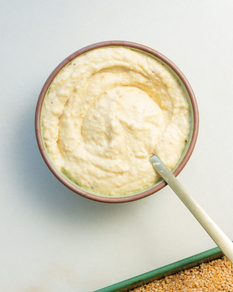 If you are thinking about making this dip a personal meal, I also like to serve it with some vegetables and a few proteins to the side. Think: a soft-boiled egg or a really nice tinned fish. Then you have a full meal ready to go!
