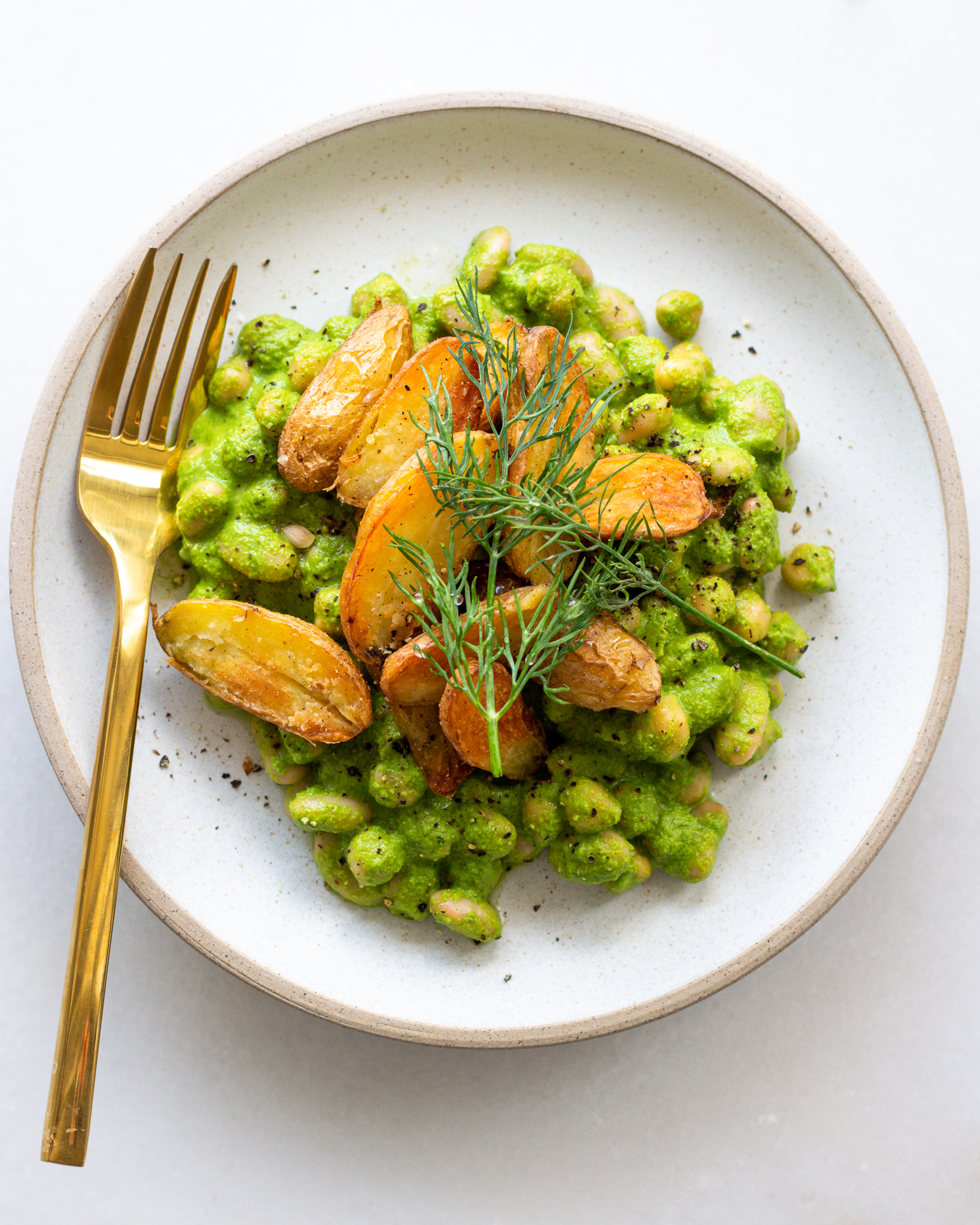 Zhoug Beans with Crispy Potatoes