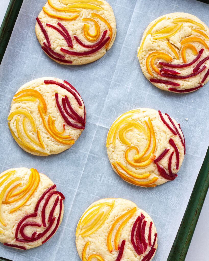The labneh gives these cookies a soft, tangy flavor and texture, where the lemon adds some much-appreciated acid, and the candied citrus peels give a relatively boring cookie so much amazing color and design. The peels are by no means necessary to the recipe, but they are SO fun to make and play around with.