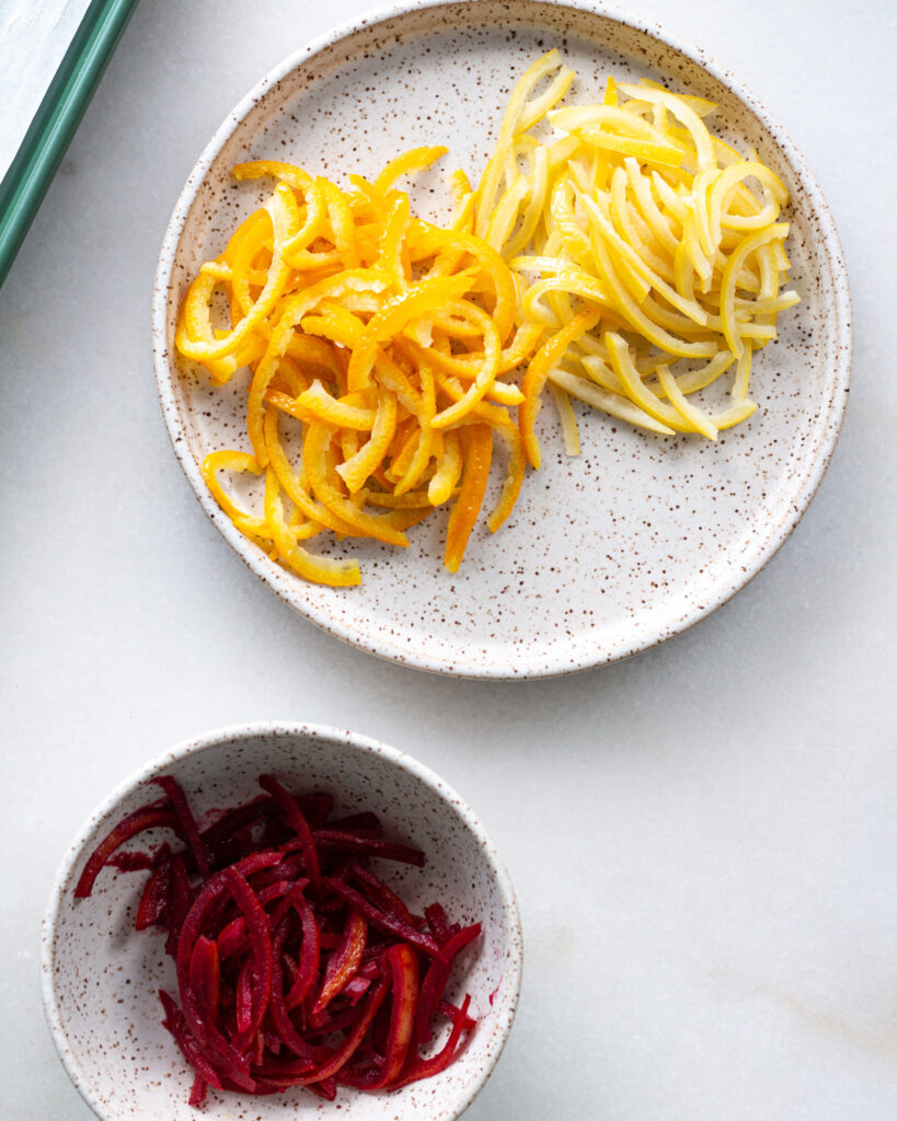 Lemon and orange peels are a key part of what makes this recipe so pretty, and the process might take a bit of time, but it’s very easy and very rewarding.