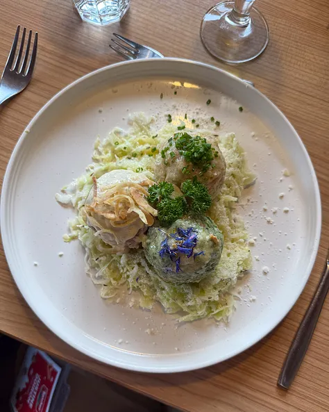 Visit Gostner Schwaige – it’s both an inn, farm, cheese dairy, apres-ski spot, and generally stunning destination in upper Bolzano. I got to meet and cook with Giada De Laurentiis (!!) but Stanley Tucci has filmed there too, so you know it’s worth a visit. Some exceptional things I tasted were their dumplings, sweet knödel (in my video with Giada), and their cultured yogurt butter, which was tangy, rich and delicious.