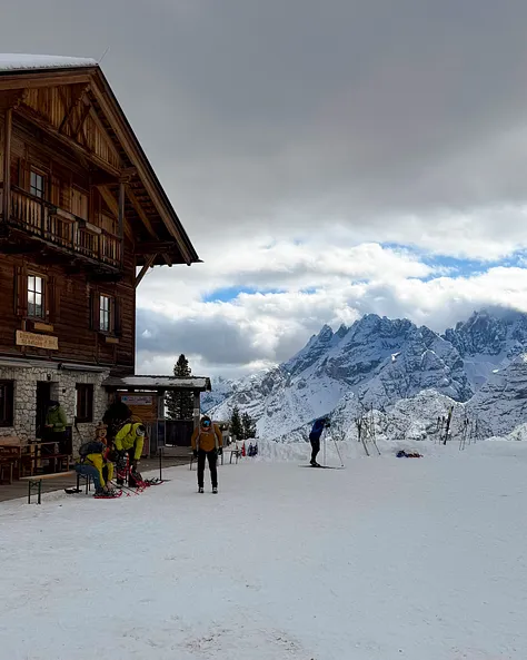 Dürrensteinhütte – which had to be my favorite stop on the trip. This is nestled up near a peak that we had to hike to. It was fun to snowshoe for hours and then feel like you earned your meal. We hiked a little bit past Landro e Pratto Piazza and saw many people doing the trip unguided. The path is pretty clear!