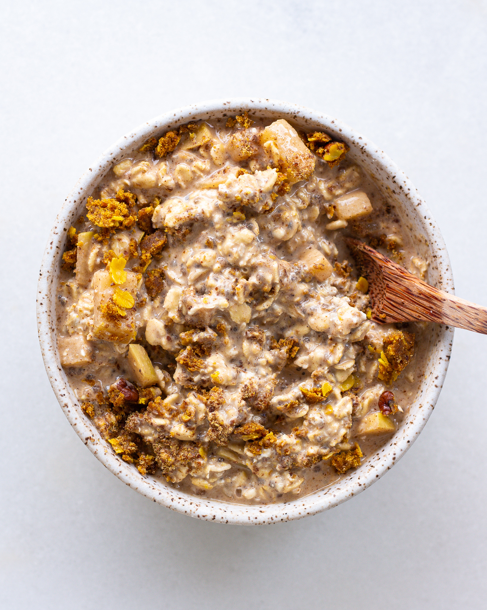 - Frozen Cherries – cherries are high in melatonin, a sleep-inducing hormone. So even a bit of cherries in these oats can relieve the severity of insomnia and increase overall sleep efficiency.