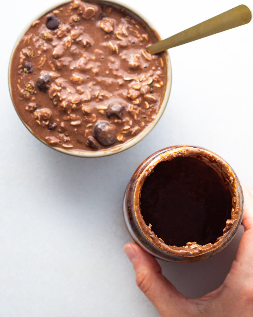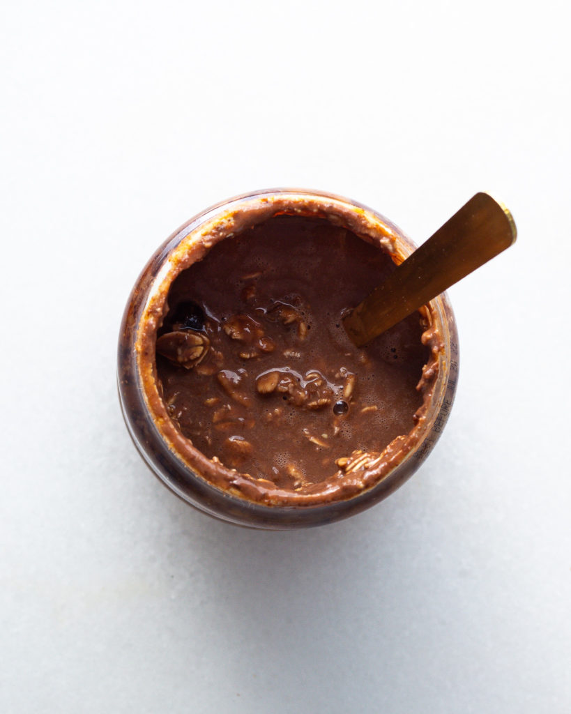 Now before you get all on me saying these look nightcap oats look remarkably suss – let me first say, ok I agree with you. BUT these single-handedly helped me kick my Halo Top habit AND get a great night’s sleep. So no matter what they look like, I sure as hell am not complaining about this chocolate overnight oats recipe.