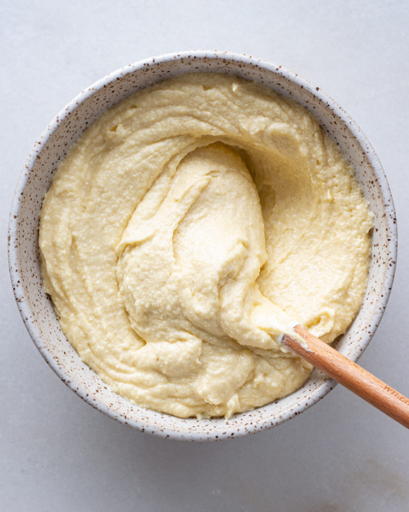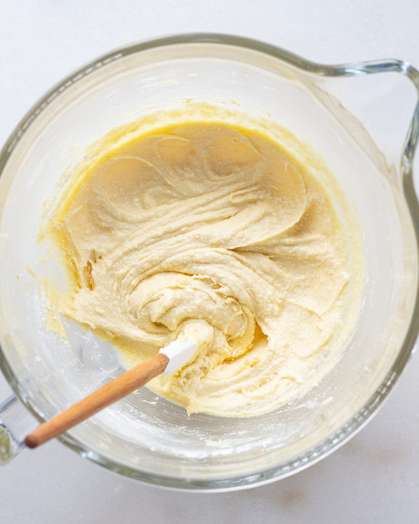 When the almond flour mixture looks like the photo above, you can add the remaining ingredients and beat until it looks smooth and well combined.