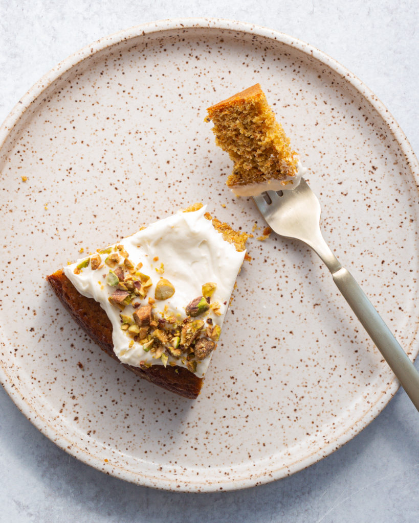 I love a snacking cake, and this pistachio carrot cake is the epitome of a perfect snacking cake.