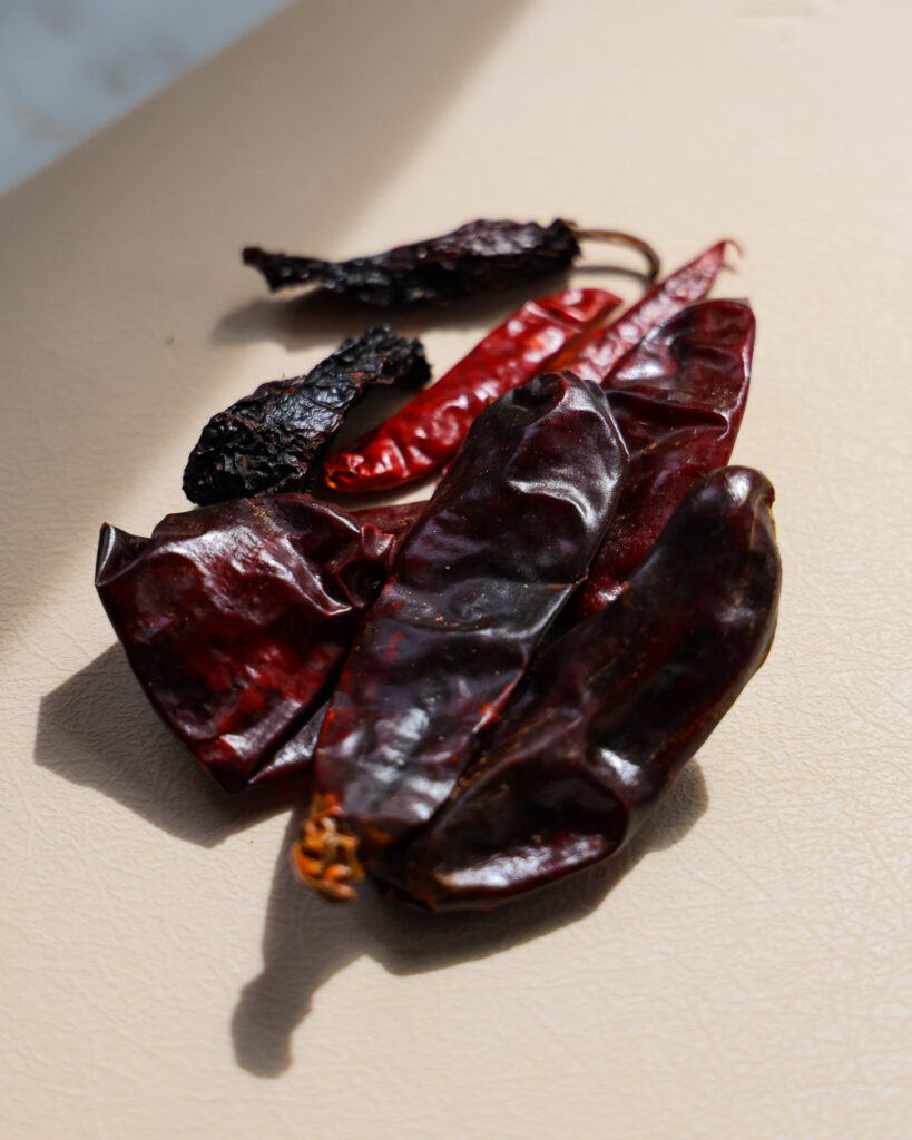 The sauce itself is built from a blend of dried New Mexican, ancho, and morita chilies, I swapped out some of the spicier ones that traditional recipes call for. The combination gives you that perfect trifecta of flavor: fruity sweetness from the New Mexican chili, deep richness from the ancho, and a hint of smoke from the morita.