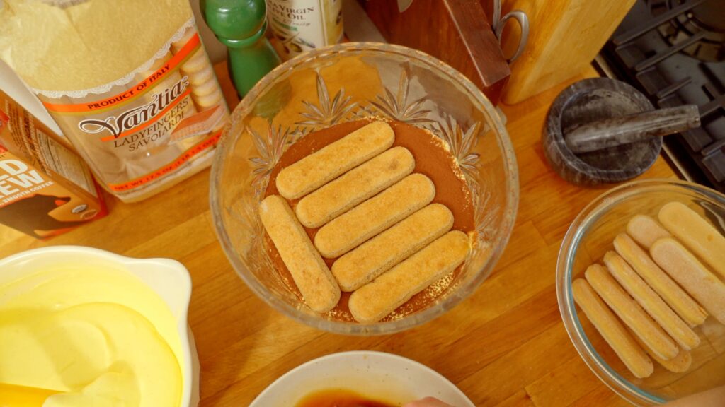 Start with a dusting of cocoa in your trifle dish, then build layers of espresso-dipped ladyfingers, creamy custard, and more cocoa powder. Repeat until the cream is your final layer.