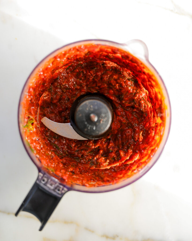 - Big flavor, minimal effort, most of the work happens in a small food processor.