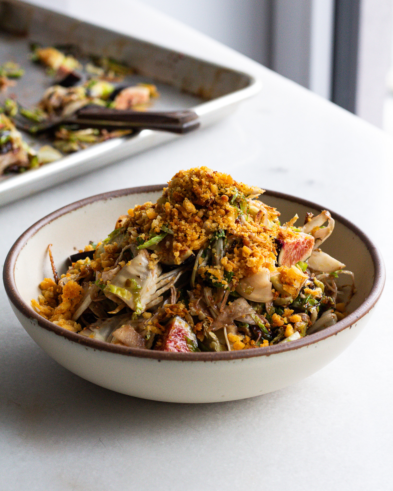 Of course, I opted to serve this nutty, zippy, bright baked salad with a swipe of labneh over toast, but you can serve it however you like. That’s the magic of it!