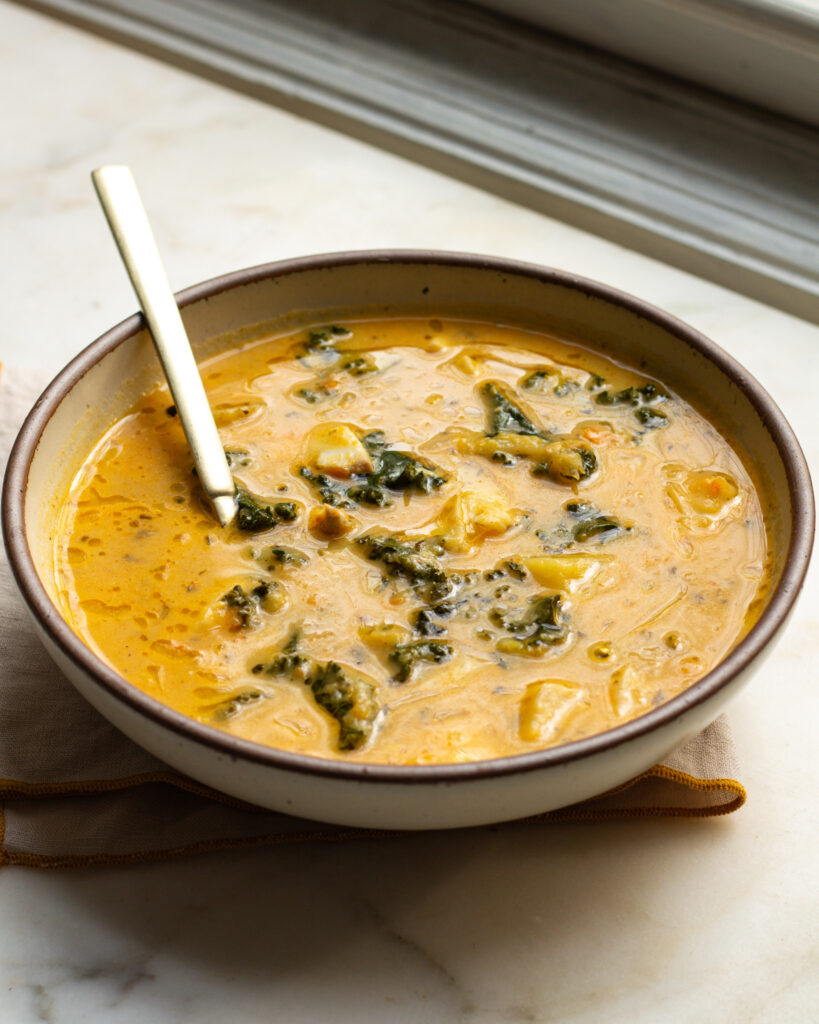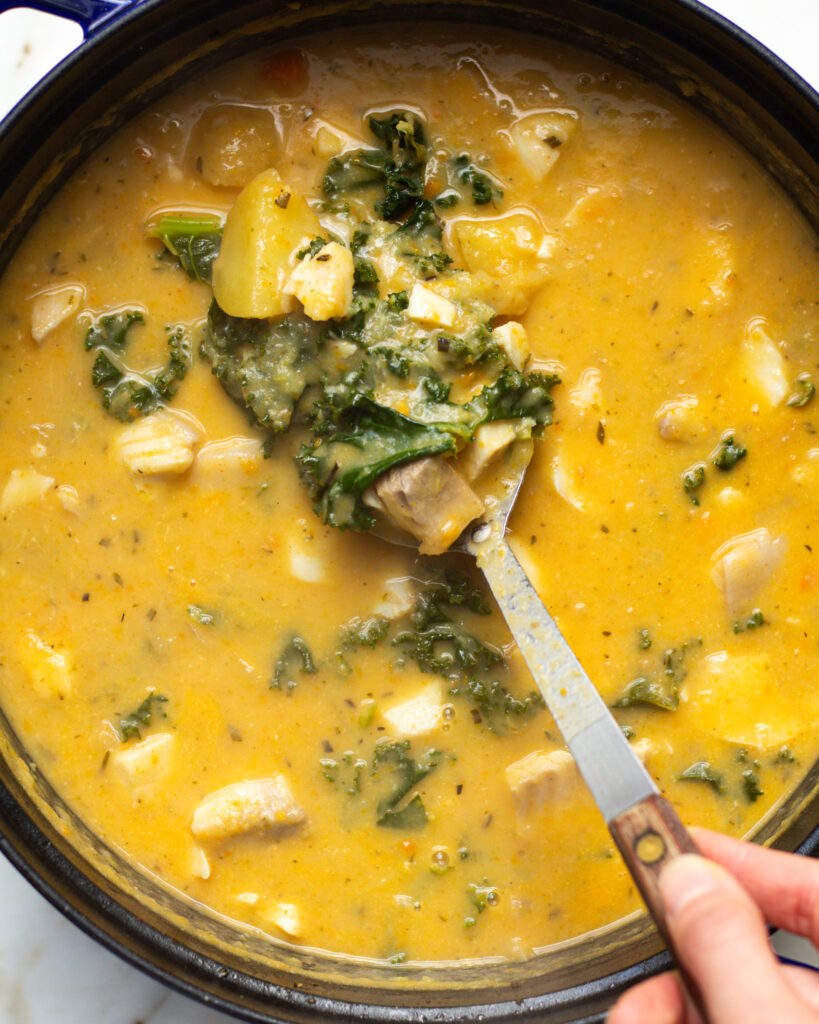 What you’re left with is a creamy, balanced chowder and more vegetables than I can even begin to handle. Which is what I’m always going for, wholesome ingredients that will nourish you but still feel indulgent.