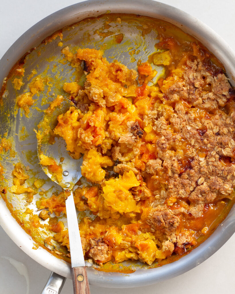 The key to a truly good crumble is time, which is a lesson I had to learn the hard way. This orange saffron crumble spends over an hour in the oven, but it is completely worth it. Plus it’s a remarkably quick prep, and that valuable time in the oven gives you jammy citrus, saffron notes and a crispy oat topping that can’t be beat.