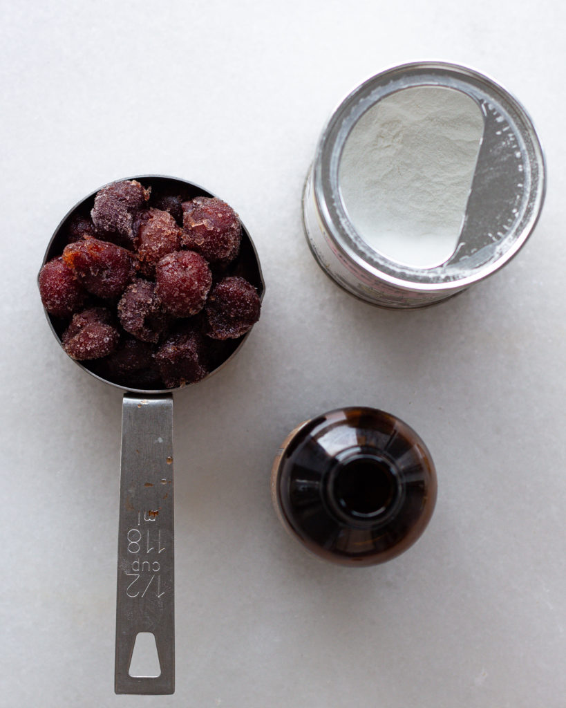 - ½ cup frozen cherries thawed & drained, 80g