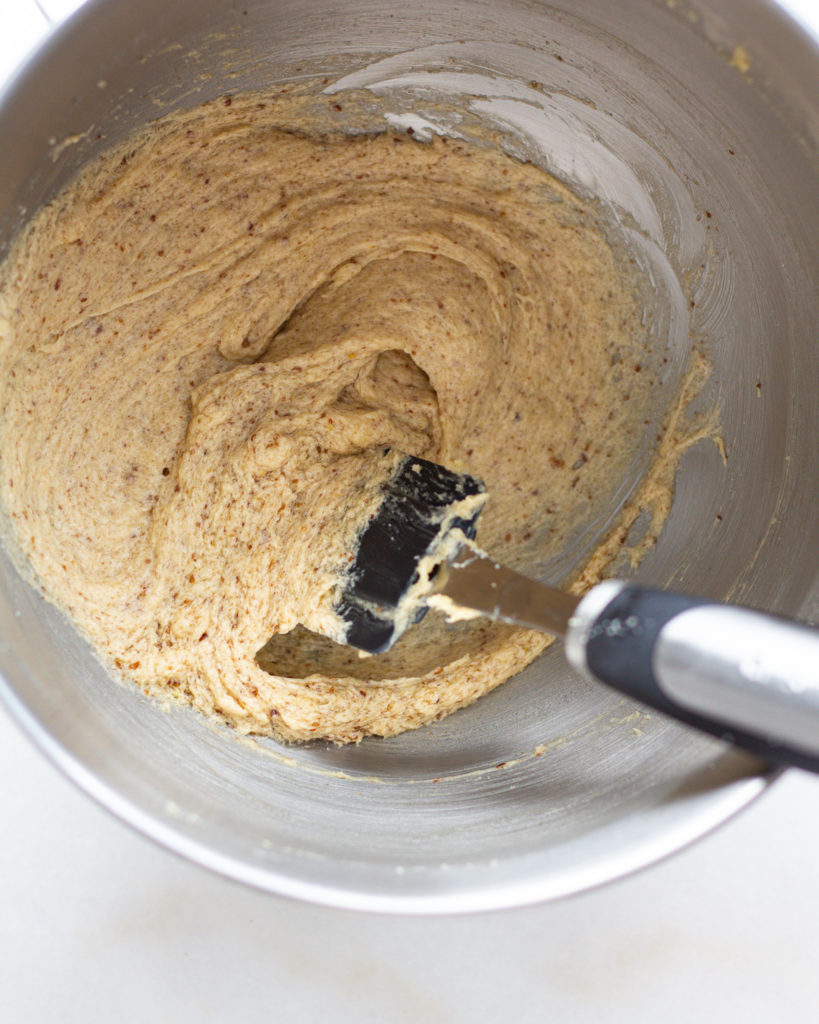 - Add the flax and vanilla to the stand mixer and beat again until the batter is smooth, about 2 more minutes.
