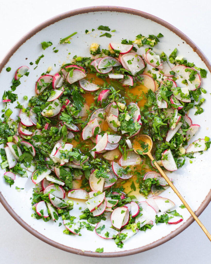 - 2-3 globe radishes, thinly sliced