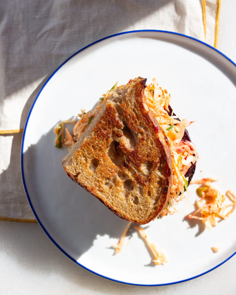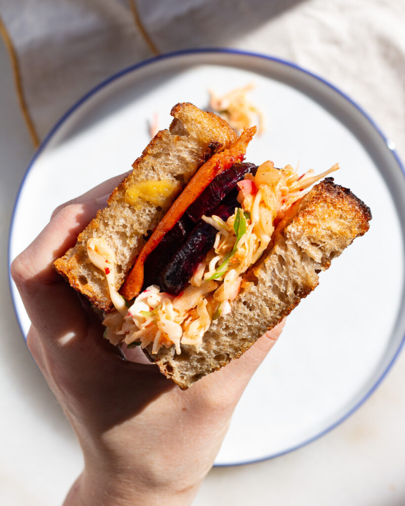 And that’s it for this Seared Beet Sandwich with Kimchi Slaw & Cheddar!