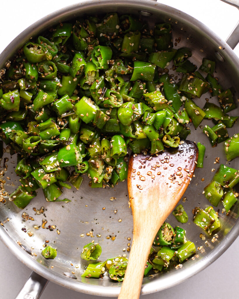 And that’s it for this shishito pepper salad with sizzled sesame, dried mint and coriander!