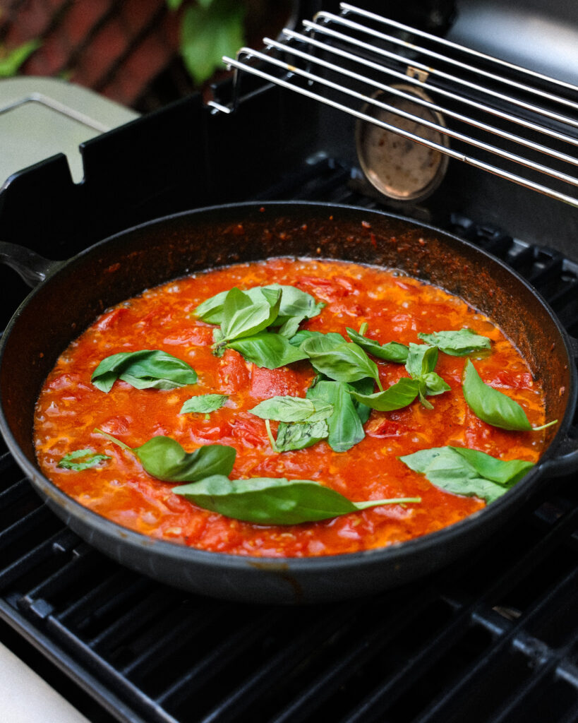 - Add in the tomatoes and stir. Season with 1/2 teaspoon of salt and a generous few cracks of black pepper. Cook for 7-8 minutes to let the tomatoes break down and get all saucy.
