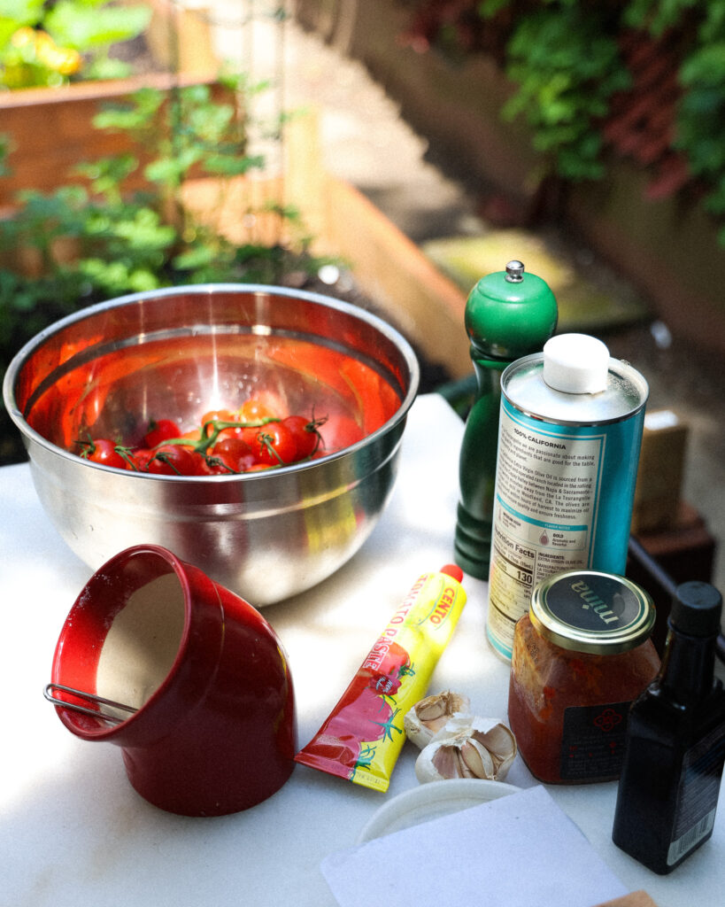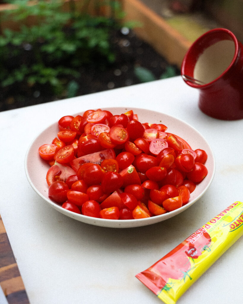 - 3 pints tomatoes, globe or cherry, or a mix of both