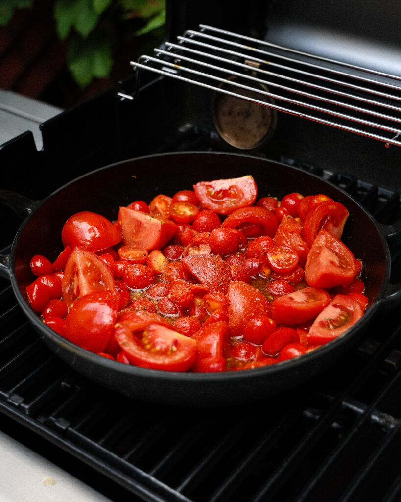 The tomatoes are the only real “prep,” and that just means cutting them into bite-sized pieces. Then you’re ready to cook!