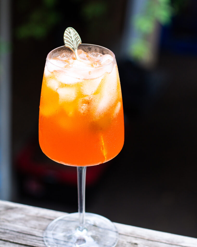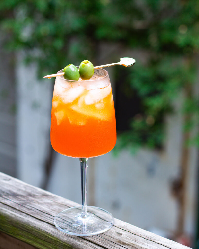 This spritz works well with Aperol, Campari, or any sweet vermouth you prefer, but I LOVE Cappelletti, which is a highly regional aperitivo in Italy that you can easily source in the United States. It has a richer flavor than Aperol, but it doesn’t get as bitter as other aperitifs like Campari. I like it because it plays well with the Fresno syrup, while still giving the spicy spritz a little more interest than your typical spritz.