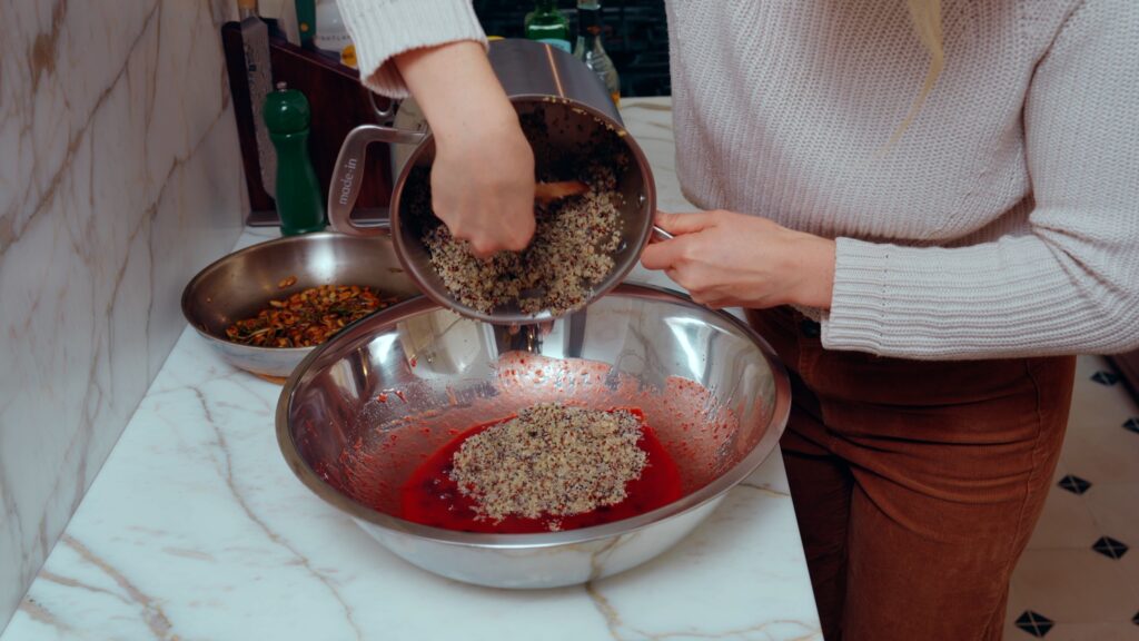 While I love quinoa, I also think any grain YOU love fits well in this salad. The thing about grains is that they are universally hearty, and they do adapt well to any flavor combination. I think quinoa has a softness to it that helps it absorb this dressing well, but I wouldn’t be opposed to a farro, a wild rice, a buckwheat, or a bulgur situation. Whatever you have (or like!) will work great.