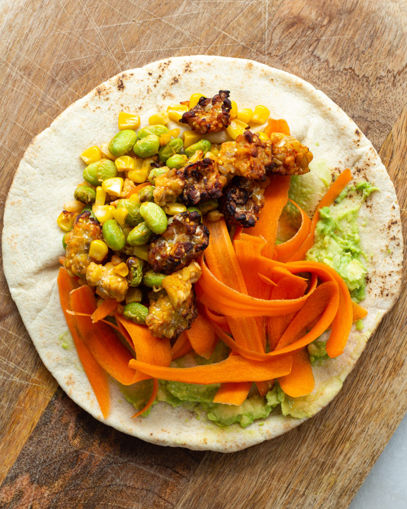 - Pita tempeh wraps – shred some carrots and chop up some cilantro. Grab your favorite pita or wraps and make a meal out of it with the sriracha tempeh.