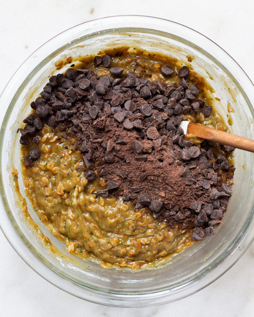 Zucchini is a wet ingredient, the sugars we are adding will make the butter and even *wetter* ingredient, and there’s not much flour to hold this recipe together.