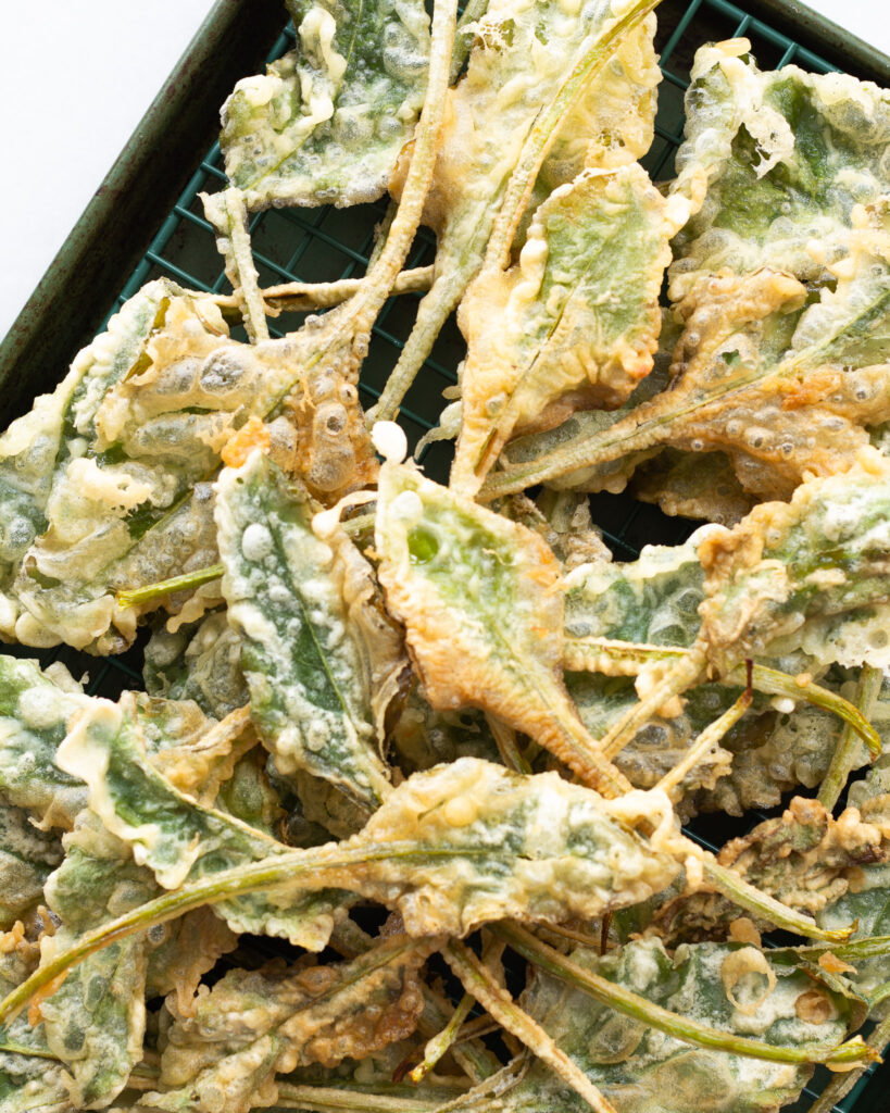 This tempura batter is one of my favorite things to have in my recipe repertoire. It’s amazing and it works on nearly any vegetable! Beet greens are just the start of it.