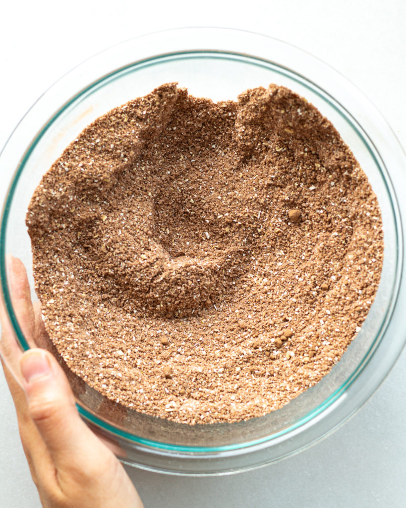 - In another bowl, whisk together the almond flour, oat flour, cocoa powder, baking soda and salt.