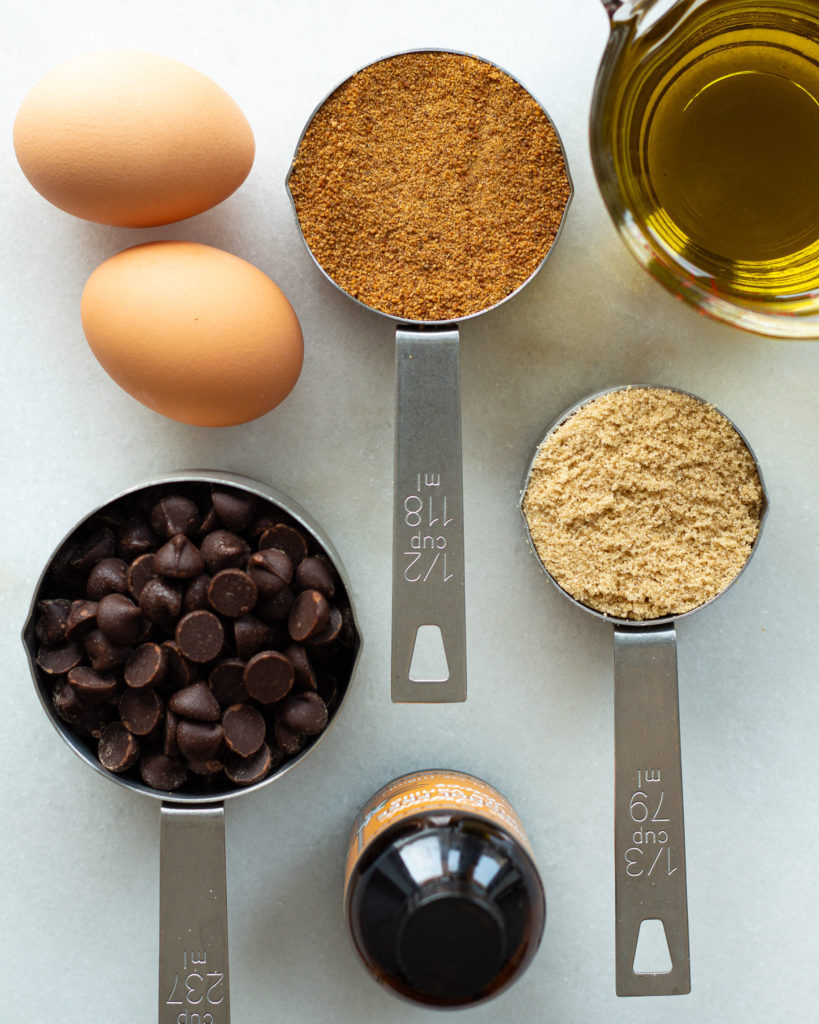 - Dry ingredients you will need for this dark chocolate brownie recipe