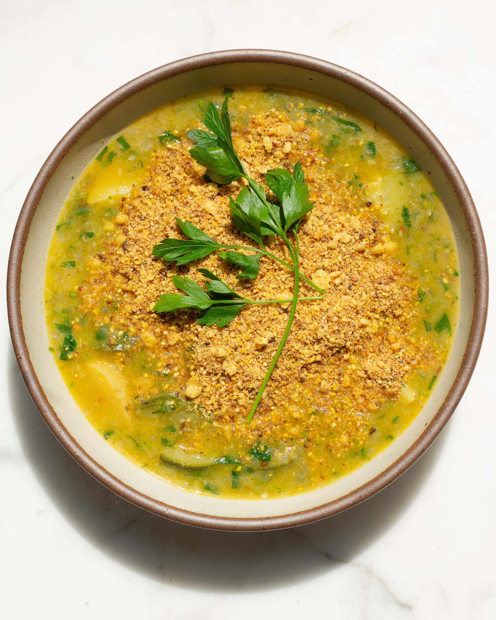 I developed this recipe when I was down bad from the super flu this year. I just wanted something rich and comforting, with lots of flavor but nothing too intimidating. It’s no secret I’ve been in a big phase of making famous soups into vegetarian soups, and I really am showing no signs of stopping.