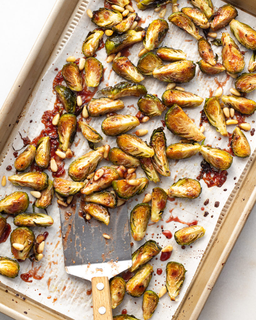 Crispy Brussel Sprouts with Cranberry Soy Glaze