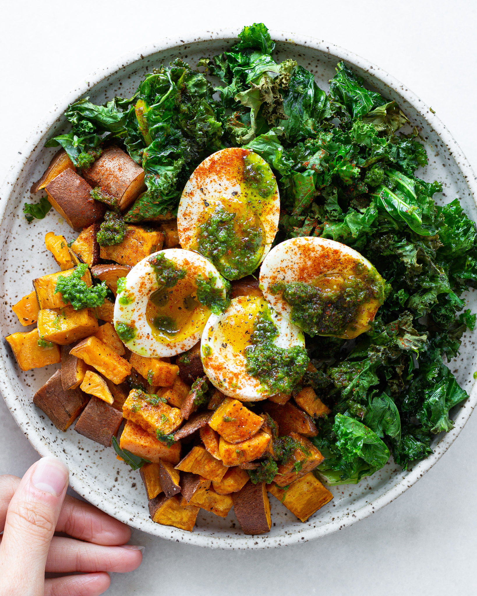The other reason I love swiss chard is because it’s in season right now, and the closer we can get to eating the seasons, the better the ingredients will taste! Because this farro grain bowl is so minimal, it’s important to source the best ingredients we can. And that’s why I opt for swiss chard in this recipe.