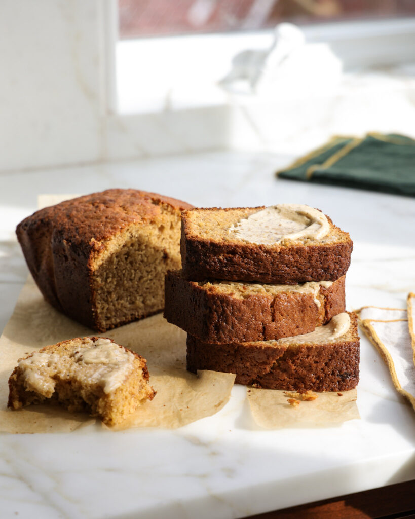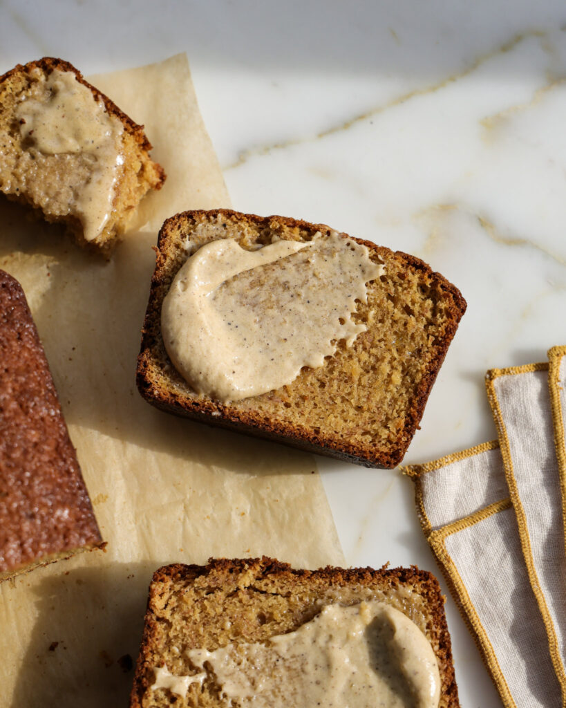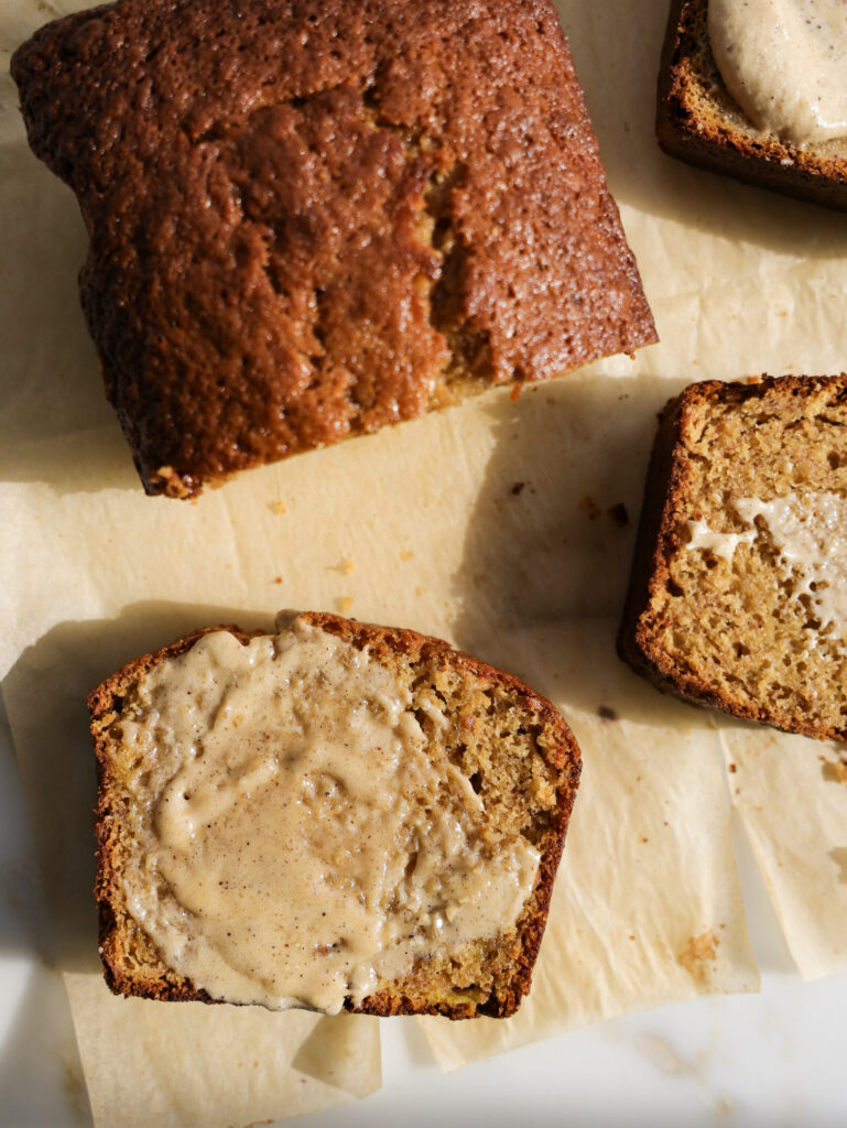 Then there’s the toasted buttercream. Which honestly, is a buttercream designed to melt. Slice the banana bread when it’s all warm, add the frosting, and you’ll have a melty, perfectly sweet situation. And the reason it’s toasted? Toasted butter, of course!