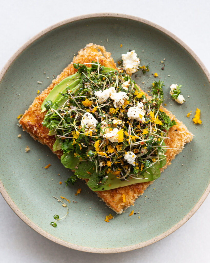 There are times when you are just craving a crispy, salty tofu cutlet – it’s a vegetarian right of passage, and the perfect vehicle for piling on even more delicious, plant-based things. Which, you see here, with this beyond perfect avocado salad. It’s my little tofu dream come true.