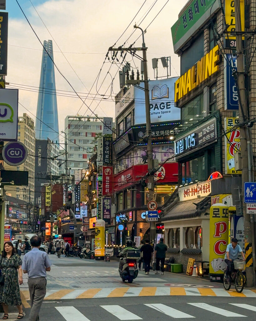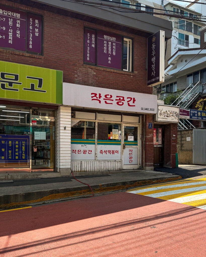 If you go to this location, you’re only a few blocks from a great shopping district. Walk in the direction of Seoul Forest Park and you will find the main stretch of stores (another easy way is route yourself towards Le Alaska Cafe, which is right on the main stretch).