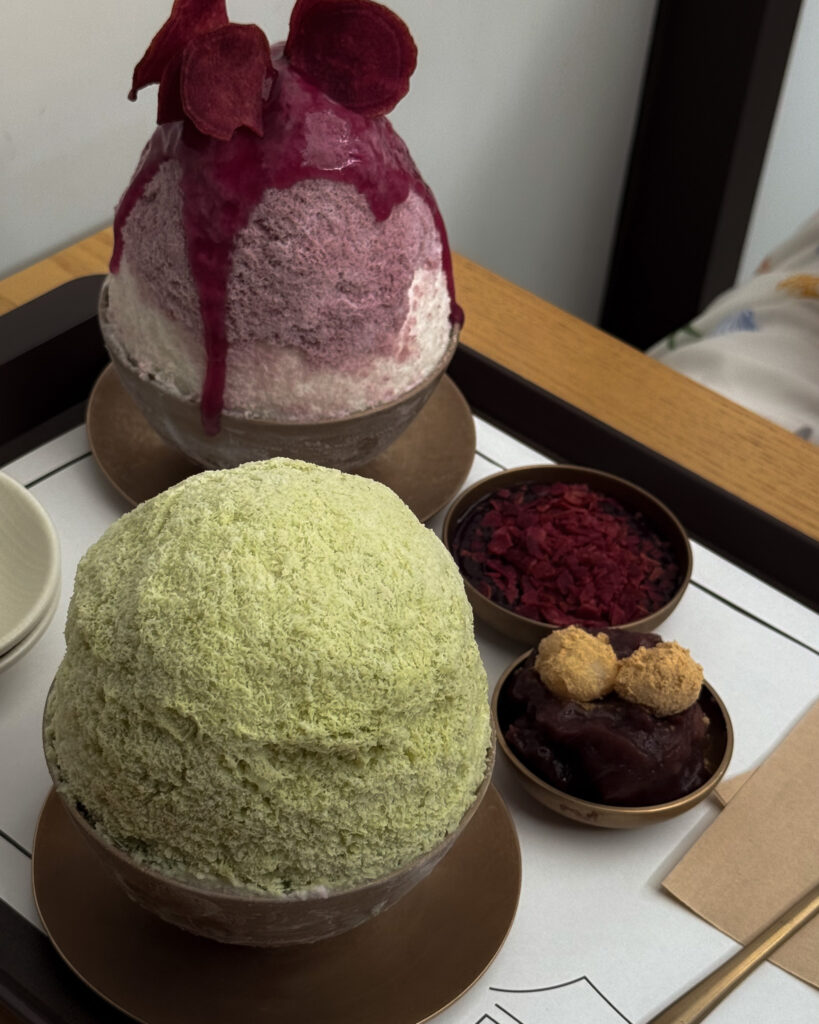 Bingsu is a shaved ice dessert that feels NOTHING like American shaved ice. Think of the “ice” part as shaved sweet cream, so it comes out much sweeter, milkier and smoother than any snow cone counterpart. Traditional bingsu is just the cream flavor with a sweet red bean paste on top (delicious), but you can get various flavors, from matcha to purple sweet potato. Unlike Salt Bread (see above) we found the range of flavors at this bingsu shop were better than the original, so there’s a lot to choose from.