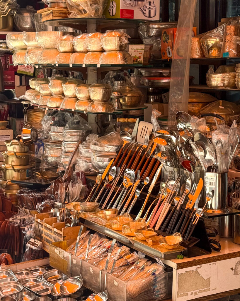 The best kimchi dumplings and tteokbokki were near the center of this market, so make sure to do a few laps before finding what you want to eat. There’s also a stall rolling out fresh noodles, you can’t miss it, and it’s so much fun to watch the rolling and slicing process.