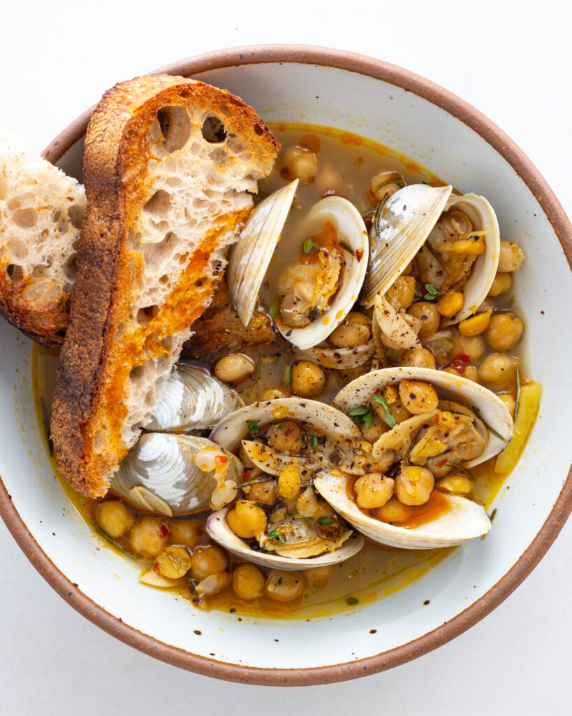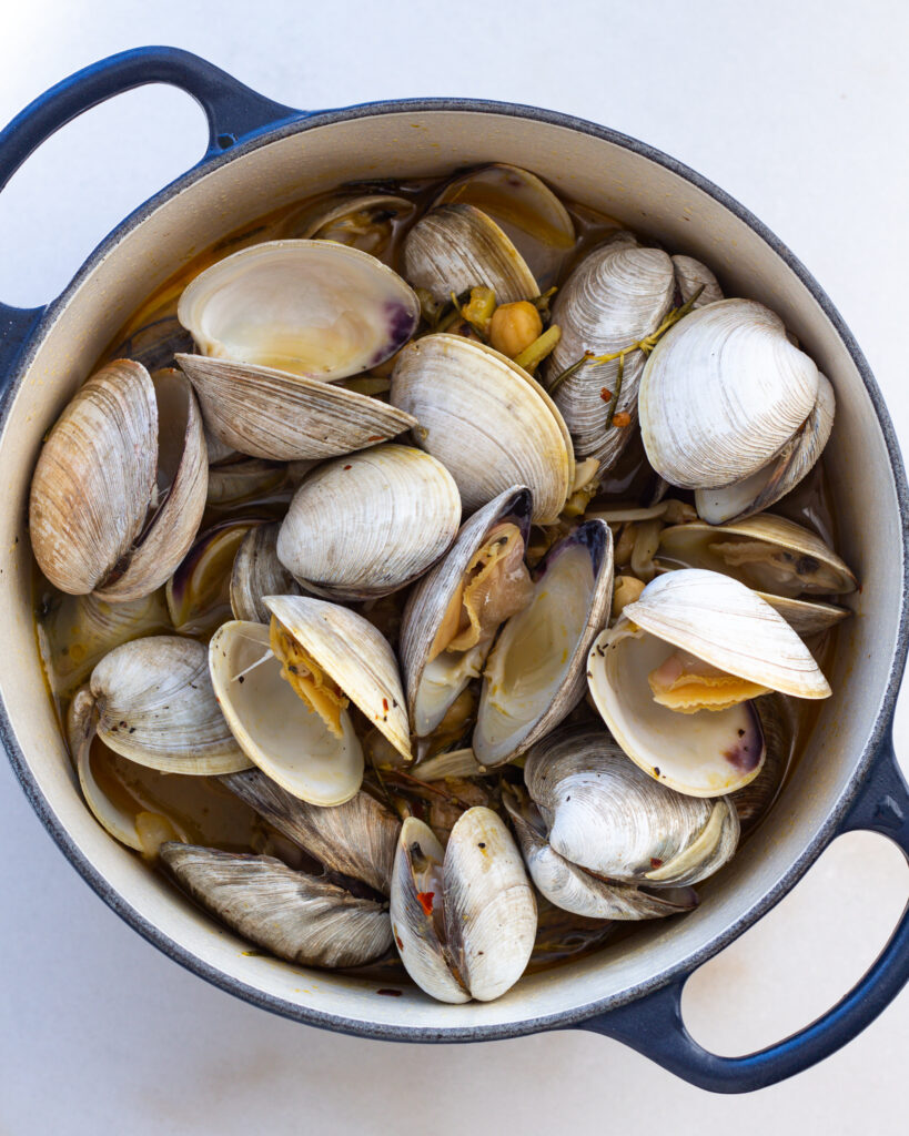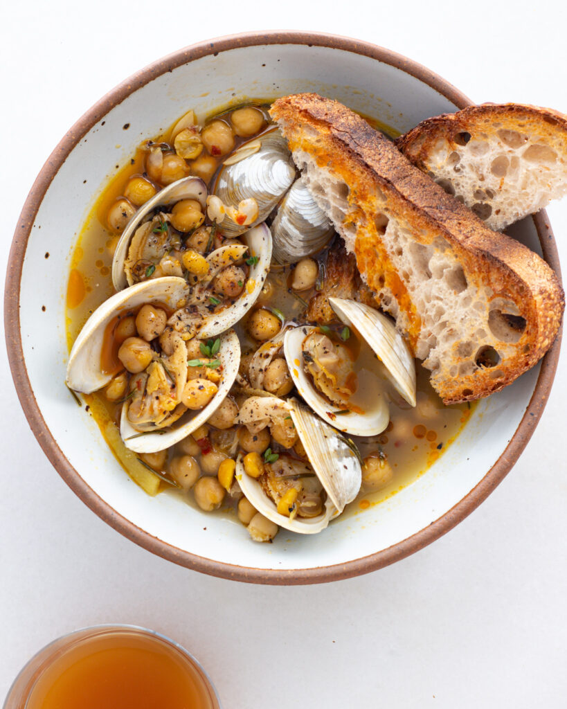 It’s truly a recipe that you start as a soup, and then let the clams do the rest of the work. This recipe is also perfect if you have never had clams before and want to try them in a traditional, unfussy format. If you have never had clams, this recipe really lets them sing. It will give you a good understanding of what clams taste like, how they perform when you cook them, and what flavors they pair with.