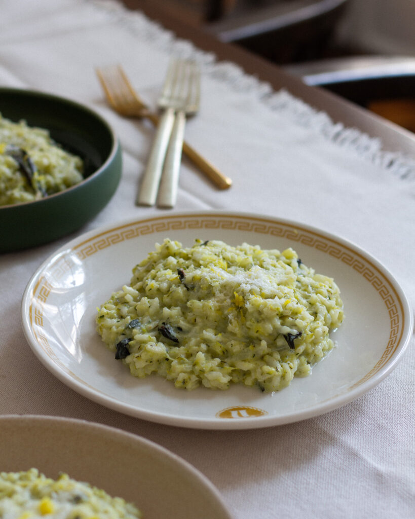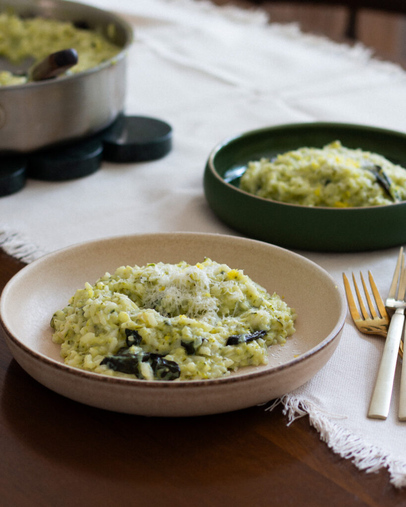 The zucchini’s moisture is also an asset here, since it lends liquid to the risotto, and the rice fully absorbs the zucchini’s flavor!